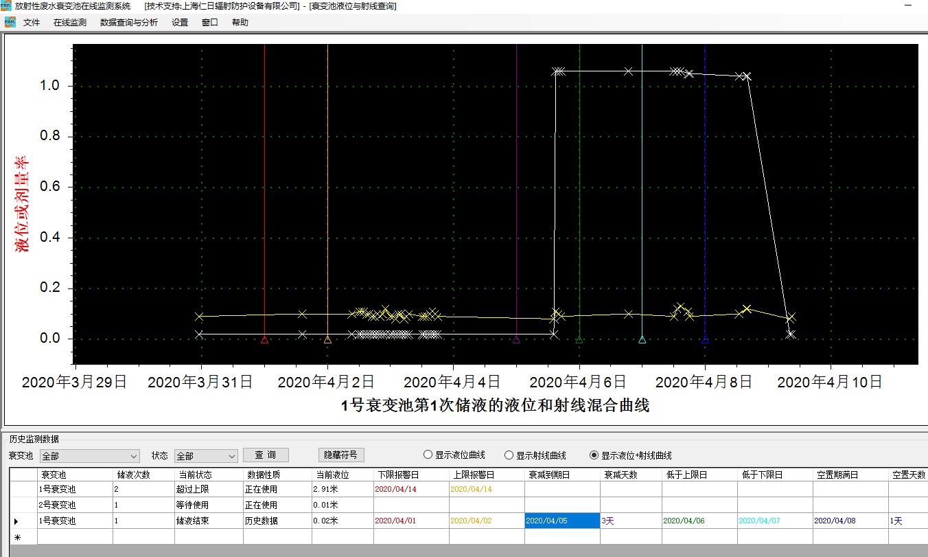 監(jiān)測軟件自動計算衰變池從開始注液到排放結束的七個不同時期,并分別給出警示